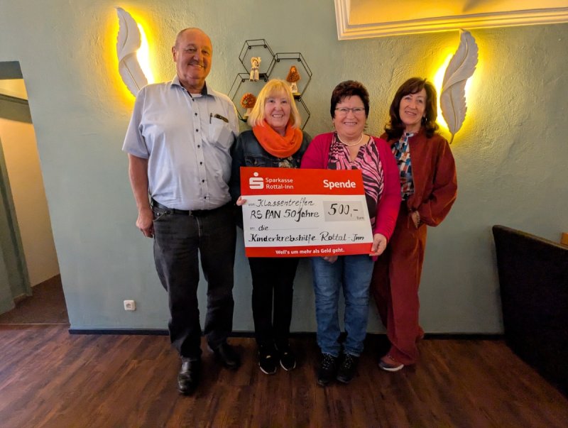 Anlässlich des 50-jährigen Schulabschlusses der Realschule Pfarrkirchen luden drei der Mitschülerinnen zum Klassentreffen ein. Auf Unkostenerstattung wurde hierbei verzichtet, stattdessen wurde eine Spendenaktion zugunsten der KinderkrebsHilfe Rottal-Inn organisiert. Für diese Unterstützung bedanken sich die Organisatorinnen sehr herzlich. So kamen stattliche 500 € zusammen, die nun an Josef Hofbauer, den 1. Vorsitzenden der KinderkrebsHilfe übergeben wurden. Dieser bedankte sich im Namen des Vereins recht herzlich.