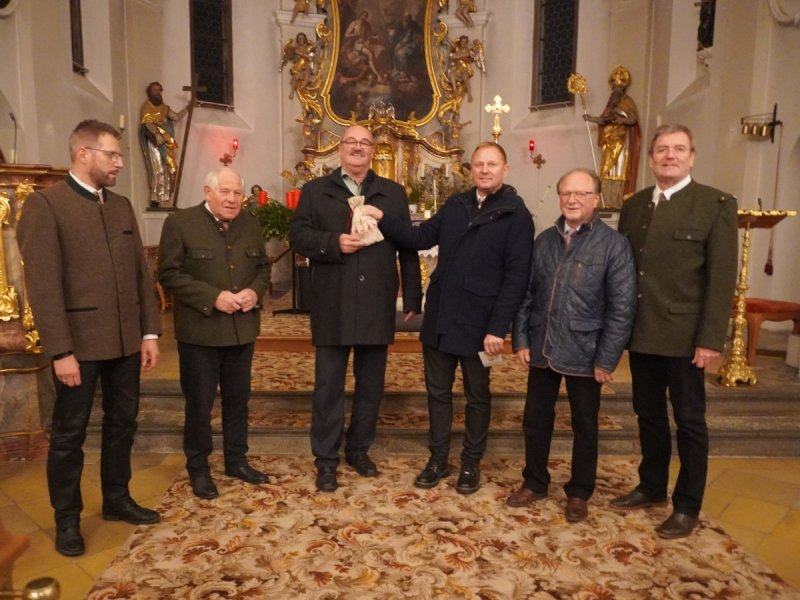 Das Foto zeigt die Spendenübergabe: von links Wolfgang Messert, Fritz Schwarz (beide Singkreis Iggensbach), Josef Hofbauer, Christian Sommer, Bürgermeister Wolfgang Haider sowie Anton Reich (Singkreis).