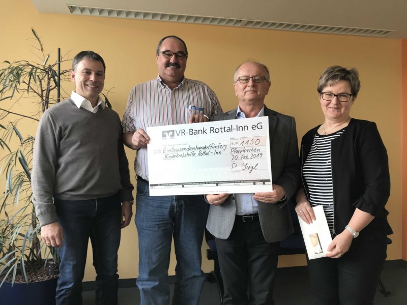 2018 hatte die Initiative das Ziel, Geld für die Kinderkrebshilfe Rottal-Inn zu sammeln. Der Geschäftsführer des Operativen Services Regensburg, Peter Siegl, überreichte kürzlich in den Räumen der Agentur für Arbeit Pfarrkirchen einen Scheck in Höhe von 1150 € an den Vorsitzenden Josef Hofbauer. Dieser bedankte sich und beschrieb die Aufgaben und Hilfsangebote des Vereins. “Ich bin mir sicher, dass unser Spendengeld bei Ihnen sehr gut angelegt ist”, sagte Peter Siegl zum Abschied.
