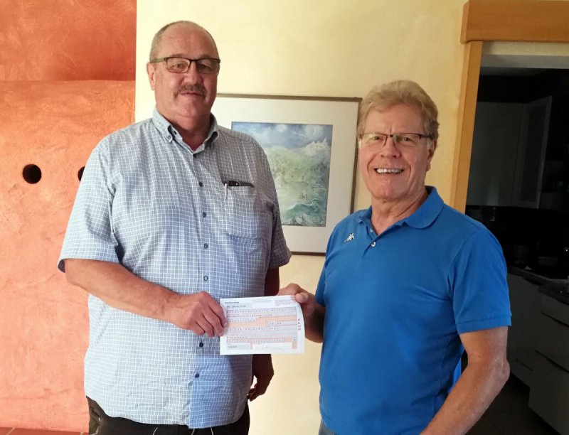 Der eigentliche Zweck des Abends war jedoch außer dem Spaß an der Musik die Sammlung von Spenden für die KinderkrebsHilfe. Dabei kamen nach direkten Unkosten erfreuliche 250 € zusammen. Den Betrag hat die Band noch um 100 € aufgestockt, die im vergangenen Jahr anlässlich einer privaten Geburtstagsfeier bei der Brunnenbaufirma Stockbauer gesammelt worden waren. So konnte Josef Hofbauer 350 € für die KinderkrebsHilfe in Empfang nehmen.