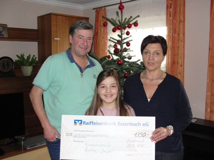 Rainer Schmidt, 2. Vorstand der Kinderkrebshilfe Rottal-Inn, konnte nun aus den Händen von Frau Nowak und ihrer Tochter stolze 1350 € entgegennehmen.