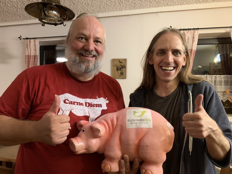 Der Liedermacher-Abend von Christoph Weiherer und Jürgen Bichlmeier, alias Mr Jones, zugunsten der KinderkrebsHilfe Rottal-Inn hat fast 100 Musikfans in den Saal im Landgasthof zur Hecke gelockt. Am Ende der fast dreistündigen Veranstaltung konnten die Künstler 1200 € aus dem Spendenschwein an den 1. Vorsitzenden der KinderkrebsHilfe, Josef Hofbauer, übergeben. Für den guten Zweck hatten die Musiker komplett auf Gage und Eintritt verzichtet.