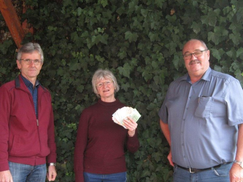 Das Foto zeigt die Spendenübergabe: von links Kassier Fritz Dietl, Hilde Osterholzer und Vorsitzender Josef Hofbauer.