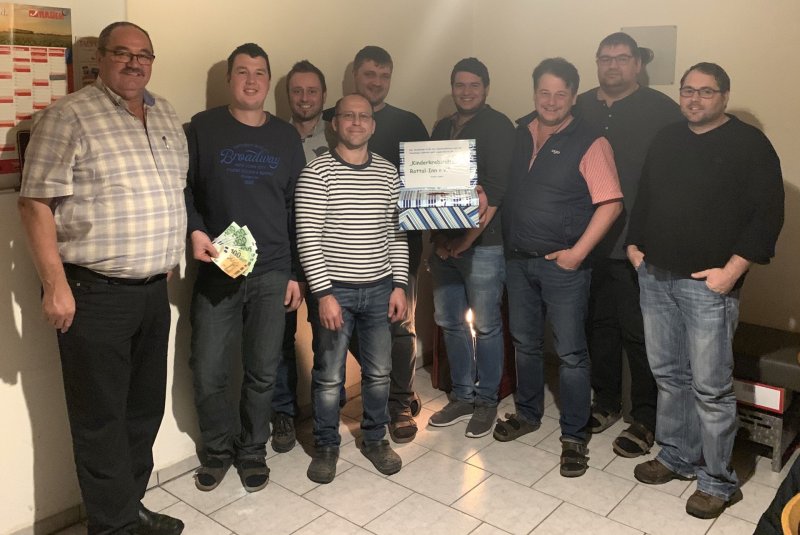 Das Foto zeigt die Spendenübergabe: von links Josef Hofbauer, Michael Hauser, Alois Wimberger, Klaus Wimberger, Roland Unertl, Martin Wittmann, Richard Wittmann, Hans Unertl, Wolfgang Stiebinger