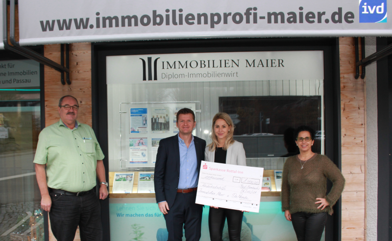Seit vielen Jahren setzen sich die Inhaberin der Eisdiele „Da Nanda“, Fernanda Haslinger, und ihr Geschäftsnachbar Gerhard Maier, Inhaber der Firma Immobilien Maier, beide Bad Birnbach, für die KinderkrebsHilfe Rottal-Inn e.V. ein. Frau Haslinger sammelte übers Jahr Spenden in Höhe von 200 €, welche sie privat auf 500 € erhöhte. Ihr Geschäftsnachbar, Hr. Dipl.-Immobilienwirt Gerhard Maier, verdoppelte diesen Betrag. So konnten insgesamt 1000 € an den 1. Vorstand, Josef Hofbauer, überreicht werden.