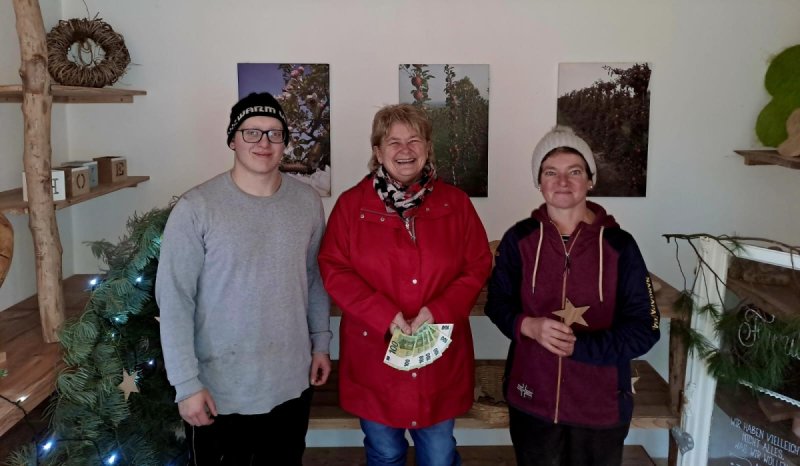 Diese hatten auf ihrem Obsthof eine Spendenkasse aufgestellt. Zusätzlich zu den Spenden der Kunden hat Bernhard Haller Sachen gedrechselt und diese ebenfalls verkauft. Ein Freund des Huses hat handgefertigte Weihnachtssterne zur Verfügung gestellt.