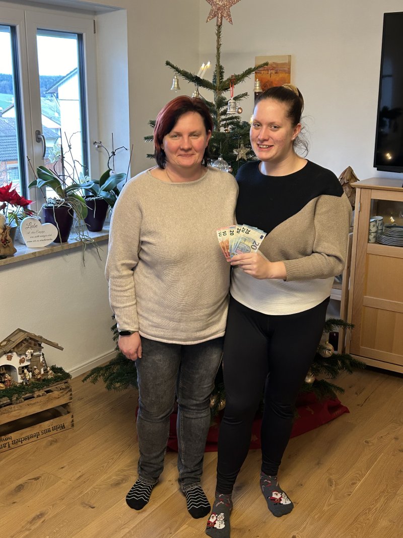 Das Foto zeigt die Spendenübergabe: von links Maria und Selina Hirler