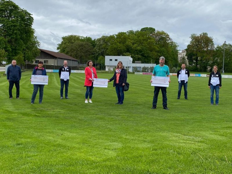 Die Hauptspendensumme teilen sich die KinderkrebsHilfe Rottal-Inn (2000 €) sowie die Palliativstation Rottal-Inn und die Spezialisierte ambulante Palliativversorgung am Inn (je 1000 €). Am Fußballplatz überreichte der FCM-Vorsitzende Johann Büchner die Schecks. Sowohl Rainer Schmidt von der KinderkrebsHilfe Rottal-Inn, als auch die Vertreter der Palliativeinrichtungen, Brigitte Haas, Manuela Kerscher und Waltraud Spiel, zeigten sich mehr als begeistert. Nicht nur die Höhe der Summe, sondern vor allem der soziale Gedanke, der hinter der Aktion steckte, sei beispielgebend. Bei der Spendenübergabe mit dabei war auch Walter Eichinger, Vater des an Krebs verstorbenen FC-Spielers Tim.