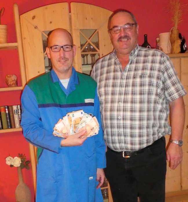 Jeder Einzelne spendete einen beliebigen Betrag, verzichtete auf Weihnachtsessen und -geschenke, außerdem wurde die Kaffeekasse „geplündert“, so dass am Ende stolze 800 € zusammenkamen. Josef Hofbauer, 1. Vorstand der Kinderkrebshilfe, traf sich nun mit Initiator Meier bei Familie Lobmeier zur Spendenübergabe. Meier lies sich ausführlich die Arbeit des Vereins erklären und fragte auch nach, wie die 800 € Spende seiner BMW-Abteilung verwendet wird.