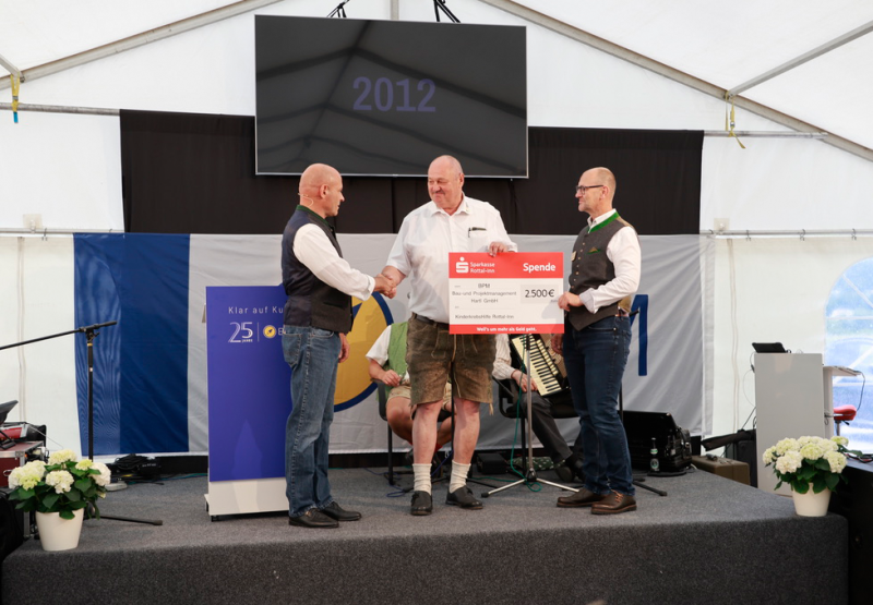 Marcus Hartl und Max Knödlseder der Firma BPM nutzten das 25-jährige Firmenjubiläum um heuer 2500 € zu übergeben. Sie fühlten sich nach dem Gespräch mit Hofbauer erneut bestätigt, dass das Geld bei den richtigen Leuten ankommt und hoffen, auch heuer wieder etwas Linderung und Freude für die krebskranken Kinder mit ihrer Spende bringen zu können.