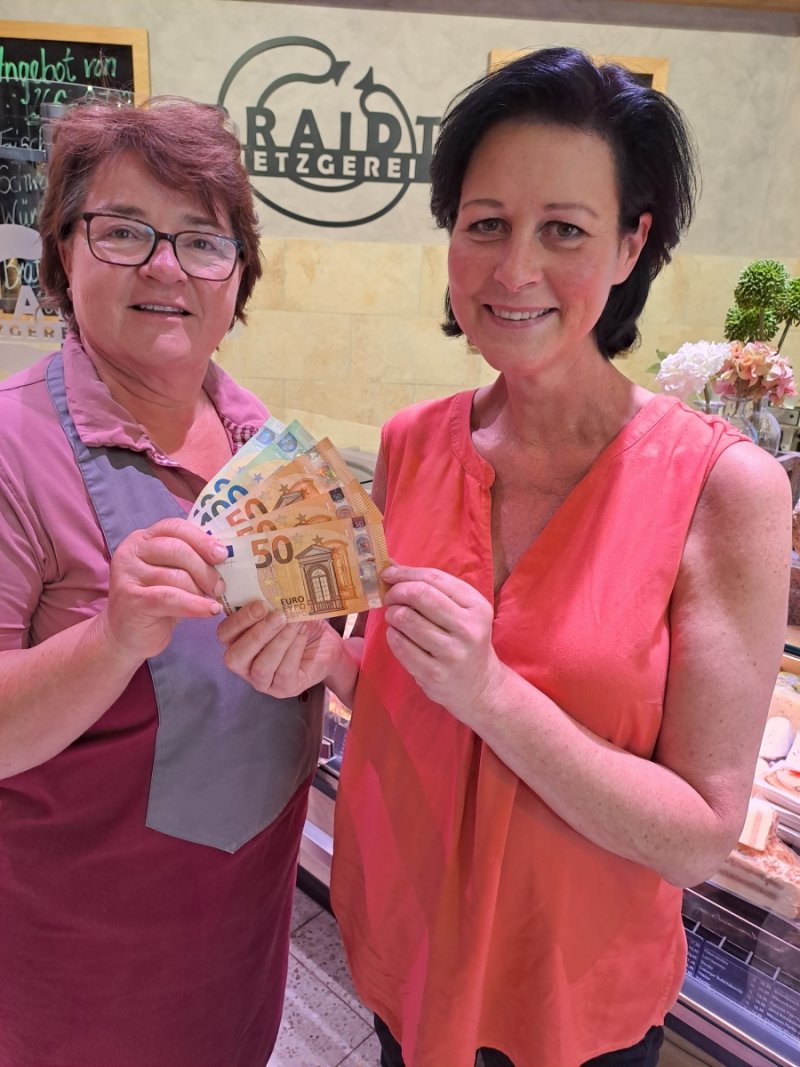 Bei der „zweiten Schlachtung“ kamen jetzt stolze 350 € zusammen. Diese wurden von Barbara Piller an Familienbetreuerin und Vorstandsmitglied Edith Lindbüchler überreicht. Piller sicherte weitere Unterstützung für die KinderkrebsHilfe Rottal-Inn zu, denn die Spendenbox bleibt weiterhin in der Filiale Hacklberg der Metzgerei Braidt aufgestellt.