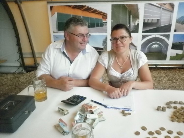 Viele der Besucher und Kunden der Firma Erich gaben auch gerne etwas mehr für die gute Sache. Am Ende konnten Herr und Frau Erich (siehe Foto) 445,90 € an die Kinderkrebshilfe Rottal-Inn übergeben.