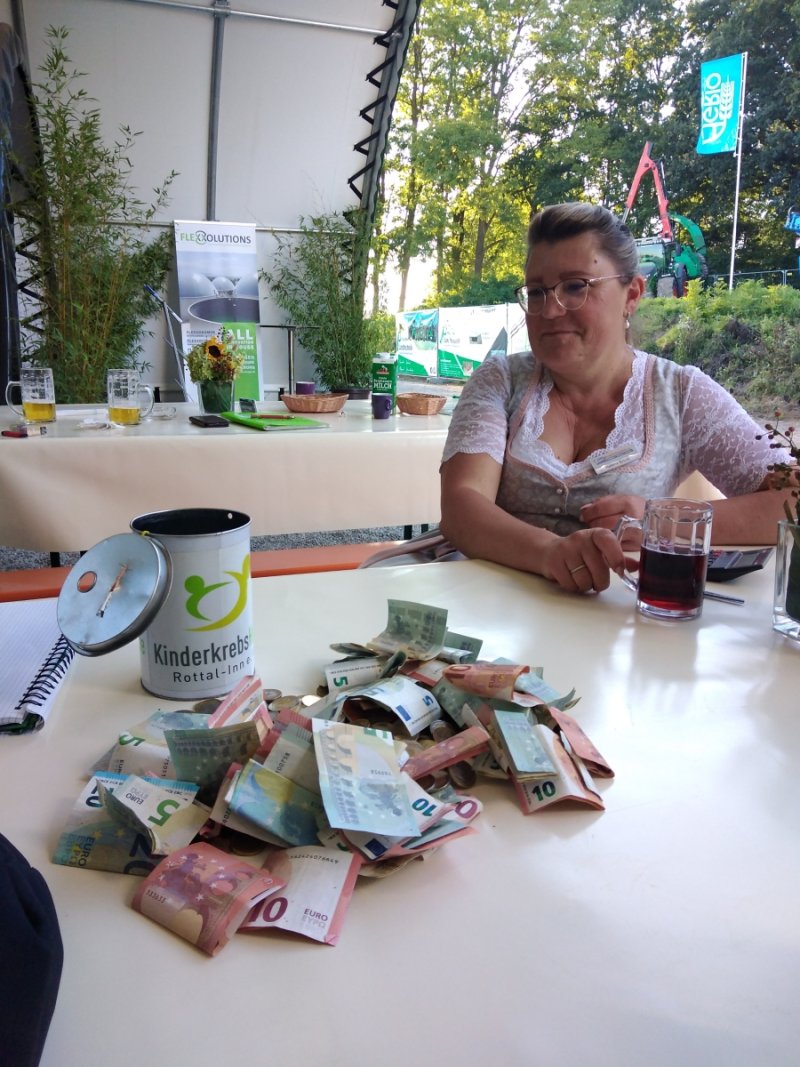 Obwohl ihnen der direkte Verkauf von kalten Getränken verboten wurde, haben sie alle Kunden und Interessierte für die kalten Getränke um eine freiwillige Spende gebeten. Da viele den jahrelangen Einsatz für die KinderkrebsHilfe Rottal-Inn schon kannten, gaben viele gerne einen Obolus. Dank der tatkräftigen Unterstützung ihres Neffen Alexander König (Foto unten) konnte Helene Erich (Foto oben) stolze 780,60 € übergeben.