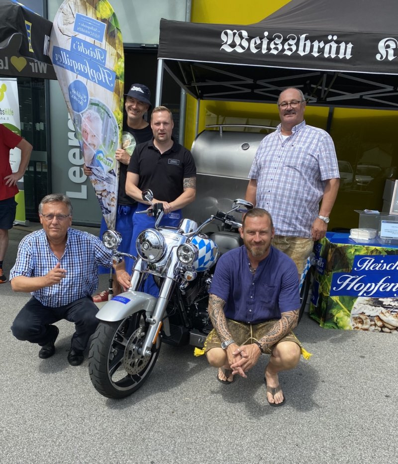 Kurzfristig wurden von Karl Heizmann zum dritten Mal die Grillaktion vorm EDEKA-Markt in Pfarrkirchen zu Gunsten der KinderkrebsHilfe Rottal-Inn e.V. organisiert. Sowohl Grillmeister Bernhard „Fleischi“ Fleischmann als auch die Jungs von der Südbayerischen Fleischwaren GmbH und dem Weißbräu Kößlarn waren sofort wieder dabei. Hinterm Harley-Davidson-Grill preiste „Fleischi“ Würstl-Semmeln an und auch die schmackhaften Biere kamen gut bei den Leuten an. Alles gab es gratis, wie immer freute sich aber aufgestellte Sparschwein aber über einen Obulus.