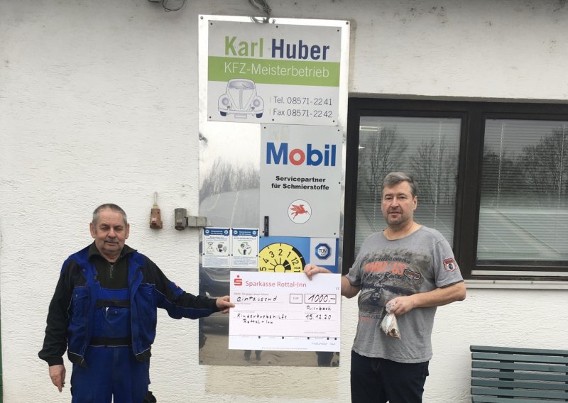 KFZ-Meisterbetrieb Karl Huber aus Stubenberg (Landkreis Rottal-Inn) spendet 1238,24 €