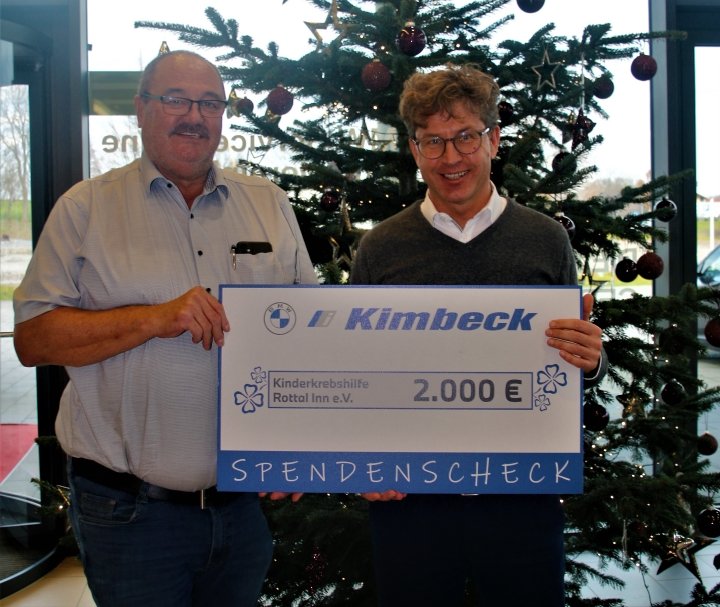 Im BMW-Autohaus Kimbeck mit Standorten in Eggenfelden und Pfarrkirchen stand wieder ein besonderer Termin im Kalender von Inhaber Guido Kimbeck: Er überreichte einen Scheck über 2000 € an den Vorsitzenden der KinderkrebsHilfe Rottal-Inn, Josef Hofbauer. „Die KinderkrebsHilfe leistet eine so hervorragende Arbeit, die Mitarbeiterinnen und Mitarbeiter helfen so vielen Kindern und Familien durch sehr schwere Zeiten – das kann gar nicht hoch genug wertgeschätzt werden“, sagte Guido Kimbeck bei der Spendenübergabe.