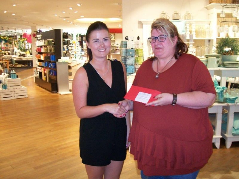 Der Erlös aus dem Verkauf in Höhe von 126,13 € wurde nun von Frau Trager vom Modehaus Pollozek (Foto links) an Karin Peklo, Beisitzerin der Kinderkrebshilfe Rottal-Inn, übergeben.