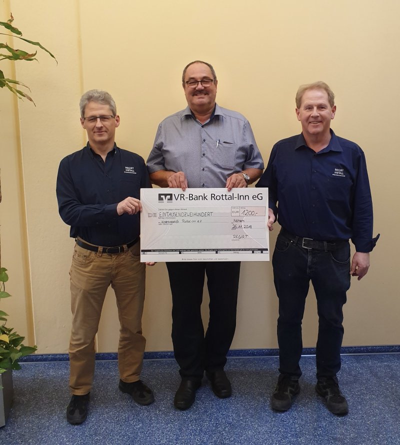 Firma Regirt aus Nöham - Gde. Dietersburg (Landkreis Rottal-Inn) spendet 1200 €