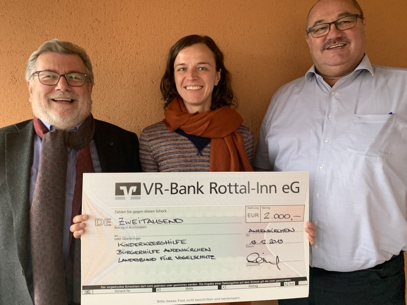 Anstatt Geschenken für die Geschäftspartner spendete die Firma Reitberger Brunnenbau- und Bohr GmbH aus Nindorf, Bad Birnbach, den so eingesparten Betrag von insgesamt 2000 € wieder an gemeinnützige Organisationen. Heuer handelte sich hierbei um die KinderkrebsHilfe Rottal-Inn e.V., welche mit 1000 € bedacht wurde, sowie die Bürgerhilfe Anzenkirchen “Ein Dorf hilft e. V.” und der Landesbund für Vogelschutz e. V., beide erhielten jeweils 500 €.