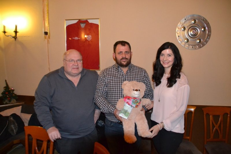 Schriftführerin Claudia Wimmer durfte nun die Spende in Höhe von 1050 € und einen kleinen Glücksbringerbären im Rahmen der Weihnachtsfeier entgegen nehmen. Sie bedankte sich für die Spende und das Vertrauen in den Verein und versicherte, dass das Geld sinnvoll und vor allem direkt für die krebskranken Kinder und deren Familien eingesetzt wird.
