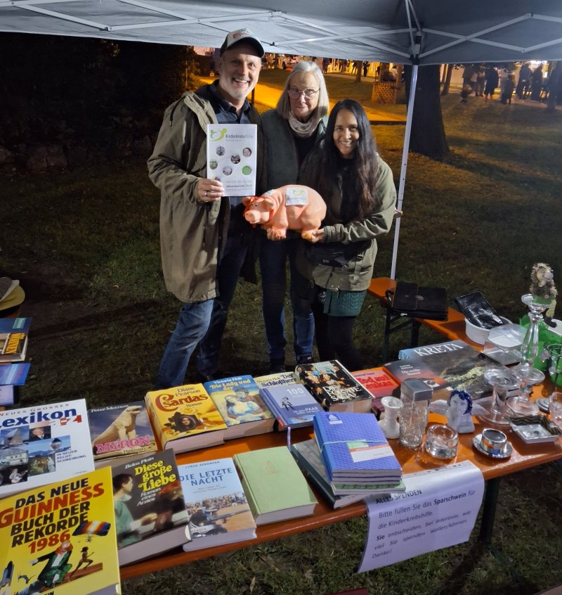 Andreas Hager, Gabriele Gräfin von Deym und Maria Hager (Foto oben von links) hatten eine bunte Mischung der reichlich vorhandenen Flohmarktware dabei. Im Laufe des Abends fand so manches “Liebhaberstück” gegen eine Spende einen neuen Besitzer. 403,81 € landeten am Ende auf dem Konto der KinderkrebsHilfe Rottal-Inn.