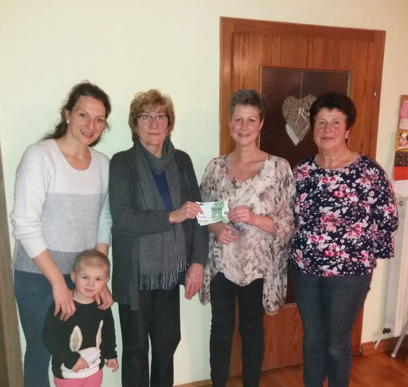 Das Foto zeigt die Spendenübergabe: von links Claudia Koller mit Tochter Sophia, Agnes Blümel, Edith Lindbüchler und Ingrid Koller.
