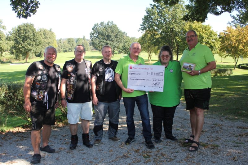 Aus allen Himmelsrichtungen Bayerns machten sich bei traumhaftem Wetter die Free Biker Bayern, unterstützt durch die Korsoaner Biker Passau und die Skullcrusher Family 89, auf den Weg nach Hebertsfelden. Zum wiederholten Male hatten die Biker schweres Gepäck dabei, nämlich eine großzügige Spende für die KinderkrebsHilfe Rottal-Inn. Josef Hofbauer, 1. Vorsitzender der KinderkrebsHilfe sowie Mitglieder des Vereins empfingen den knapp 80 Motorräder starken Corso beim Rottaler Golf- und Country-Club e.V., wo heuer die Spendenübergabe stattfand.