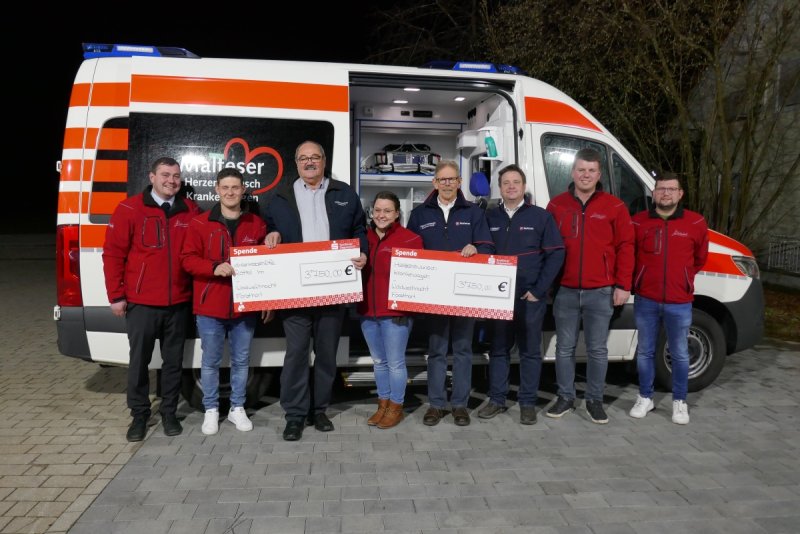 Das Foto zeigt die Spendenübergabe: von links 1. Kommandant Stefan Leder, 2. FF-Vorsitzender Josef Forster, Josef Hofbauer, KinderkrebsHilfe Rottal-Inn, Lena Schütz, Initiatorin des Spendenaufrufes, Ulrich Weniger und Josef Kandler vom Malteser Hilfsdienst e.V. Kreisgeschäftsstelle Deggendorf, 1. FF-Vorsitzender Robin Lindinger und 2. Kommandant Jan Ambros.