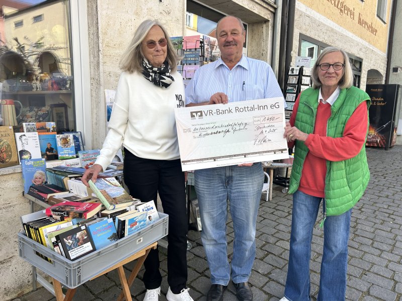 Gabriele Gräfin von Deym erhält in ihrem Geschäft „SCHÖNES FÜR HEIM UND HOF“ in Pfarrkirchen immer wieder Bücherspenden. Diese gibt sie dann gegen eine kleine, freiwillige Spende für die KinderkrebsHilfe Rottal-Inn e.V. an Interessierte weiter. So kam im Laufe der Zeit der stolze Betrag von 1450 € zusammen, welchen sie nun gemeinsam mit ihrer Schwester, Renate Brinkmann, an den 1. Vorstand des gemeinnützigen Vereins Josef Hofbauer übergab.