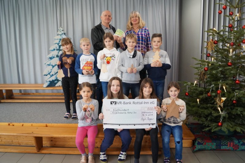 Der Basar war ein voller Erfolg. Etwa die Hälfte der Einnahmen geht an die KinderkrebsHilfe Rottal-Inn. Bei der Übergabe der Spende von 500 € freute sich Vorstandsmitglied Max Rutzinger über den schönen Betrag und dankte der Schule mit Rektorin Anja Berger und den Kindern für ihr Engagement. Das Geld komme in vollem Umfang den an Krebs erkrankten Kindern zugute.