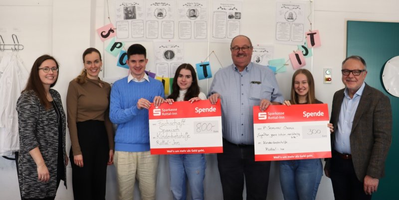 Mithilfe von zwei Projekten unterstützten die Gymnasiasten die KinderkrebsHilfe Rottal-Inn. Die Fachschaft Spanisch steuerte mit einer landestypischen Lotterie 800 € bei, die Abteilung Chemie mit einer Verkaufsaktion weitere 300 €.
