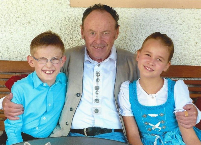 Hans Nadler wollte keine Geschenke, bat aber um eine Spende für die Kinderkrebshilfe Rottal-Inn. Die Gäste spendeten insgesamt 1025 €, die der Jubilar auf 1200 € aufrundete. Für die großzügigen Spenden der Gäste und die gelungene Feier bedankte sich Hans Nadler recht herzlich. Auf dem Foto ist Hans Nadler mit seinen Enkelkindern Niklas und Sarah.