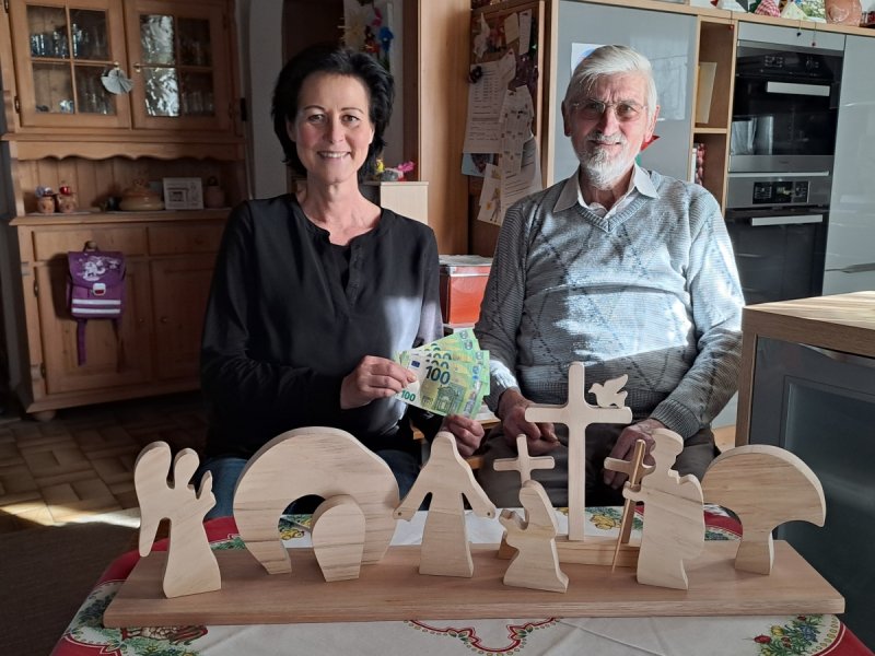 Familienbetreuerin und Vorstandschaftsmitglied Edith Lindbüchler durfte auch heuer wieder die Summe von 500 € in Empfang nehmen. Sie bedankte sich für den stetigen Einsatz der Familie und wünschte dem Bastler Hans Paulik noch viele so schöne Ideen, die er in Holz umsetzen kann.