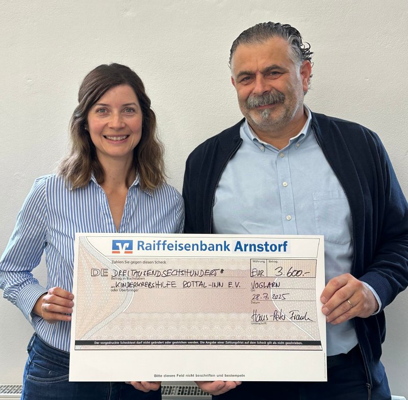 Da ihm vor allem das Schicksal erkrankter Kinder sehr ans Herz geht, hat er nun den gesamten Betrag an die KinderkrebsHilfe Rottal-Inn e.V. übergeben. Schriftführerin Claudia Wimmer durfte den symbolischen Scheck entgegennehmen und bedankte sich herzlich im Namen der 47 Familien, die derzeit vom Verein betreut werden.