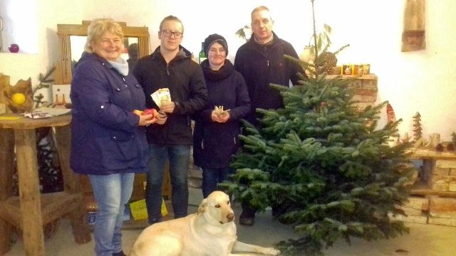 Nicht zum ersten Mal stellte sich Familie Haller in den Dienst der guten Sache und spendete auch heuer eine ansehnliche Summe für die Kinderkrebshilfe Rottal-Inn. Vereinsmitglied Hildegard Aigner durfte deshalb den stolzen Betrag von 1000 € auf dem Obsthof Haller für die krebskranken Kinder entgegen nehmen. Bernhard und Christiane Haller berichteten, dass das Geld von ihren Kunden kommt. Denn jeder Euro, der im Jahresverlauf beim Obstkauf oder jetzt aktuell beim Christbaumkauf über den eigentlichen Preis hinaus gegeben wird, wandert in die Spendenkasse.