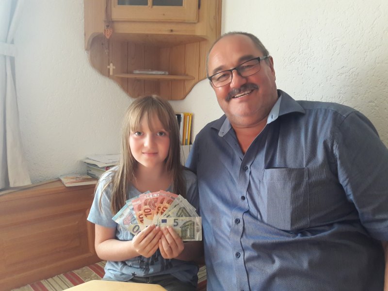 Gesagt getan: Sie schrieb auf die Einladung zur ihrer Feier, dass sie heuer eben keine Geschenke möchte, sondern lieber Geld, das sie dann für krebskranke Kinder spenden möchte. Ihre jungen Gäste und deren Eltern fanden die Idee auch gut, und so kamen 106 € zusammen. Und diese hat die Johanna jetzt dem Vorsitzenden der KinderkrebsHilfe Rottal-Inn Josef Hofbauer überreicht. Dass sich dieser gefreut hat über die Aktion des Mädchens, versteht sich von selbst.