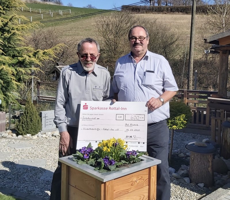 Noch vor der Coronasperre wurde Josef Hofbauer, 1. Vorstand der KinderkrebsHilfe Rottal-Inn e.V., zu einer Spendenübergabe geladen. Otto Jiskra (Foto links) wollte zu seinem 70. Geburtstag zwar eine Feier, aber von seinen Gratulanten keine Geschenke. Stattdessen bat er um Geldspenden, die er dann dem gemeinnützigen Verein der KinderkrebsHilfe überreichen kann.