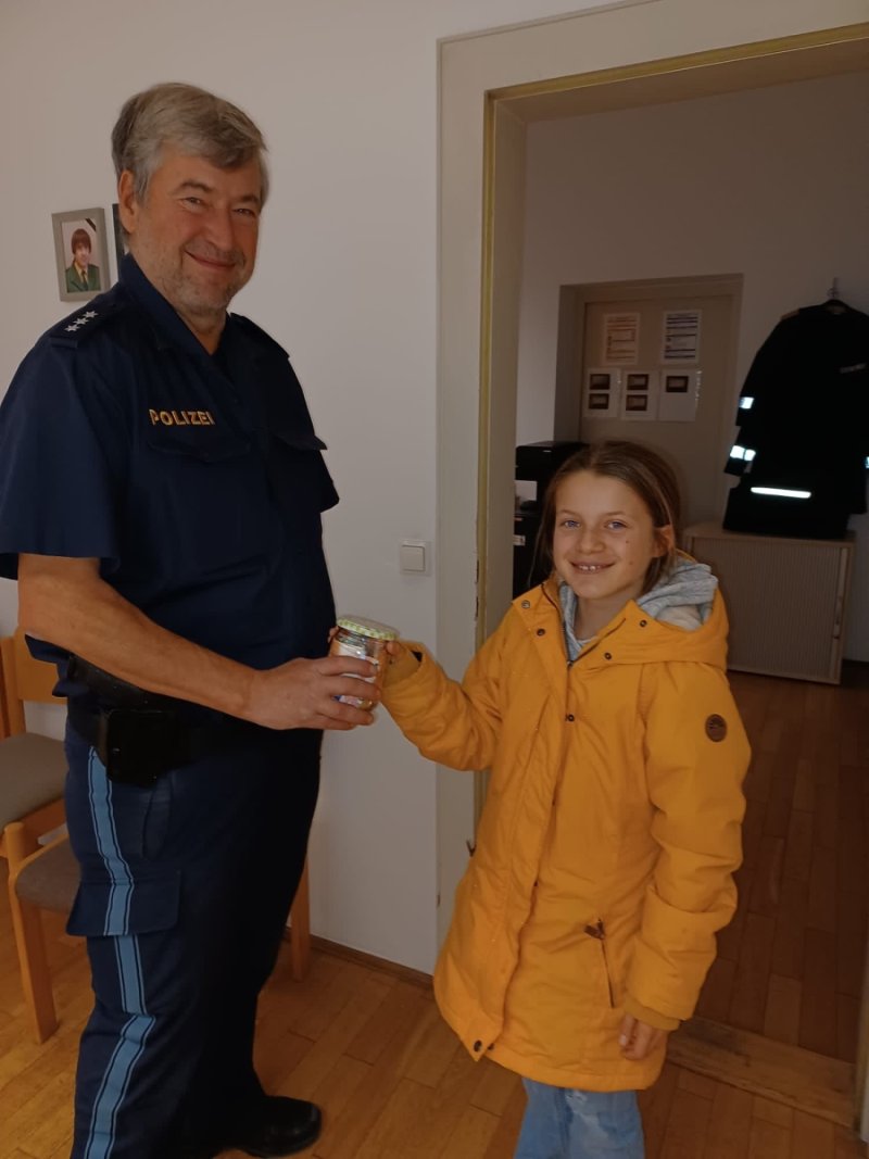 Auch heuer hat Katharina Wieschalka aus Dietersburg den 2. Vorstand der KinderkrebsHilfe Rottal-Inn Rainer Schmidt wieder in der Arbeit besucht und ihm ein Glas voller Geld für den Verein überbracht.