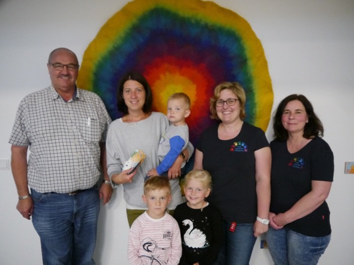 Der Kassensturz ergab einen Erlös von 500 €. Im Rahmen einer kleinen Feierstunde übergaben in der Kindertagesstätte Leiterin Eva Mack, Alexandra Krahl und für den Elternbeirat Manuela Zanklmaier die Spende an Josef Hofbauer von der Kinderkrebshilfe