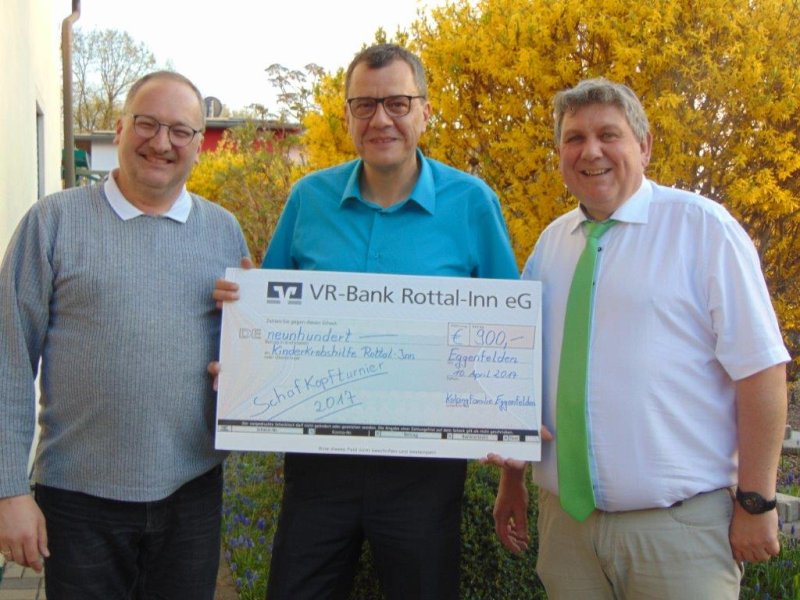 Die Kolpingfamilie Eggenfelden spendete den Erlös ihres jährlichen Schafkopfturniers in Höhe von 900 € der Kinderkrebshilfe Rottal-Inn.