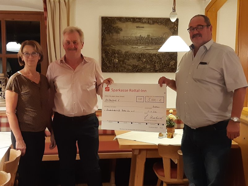 Das Foto zeigt die Spendenübergabe: von links Inge und Ludwig Kirschner und Josef Hofbauer