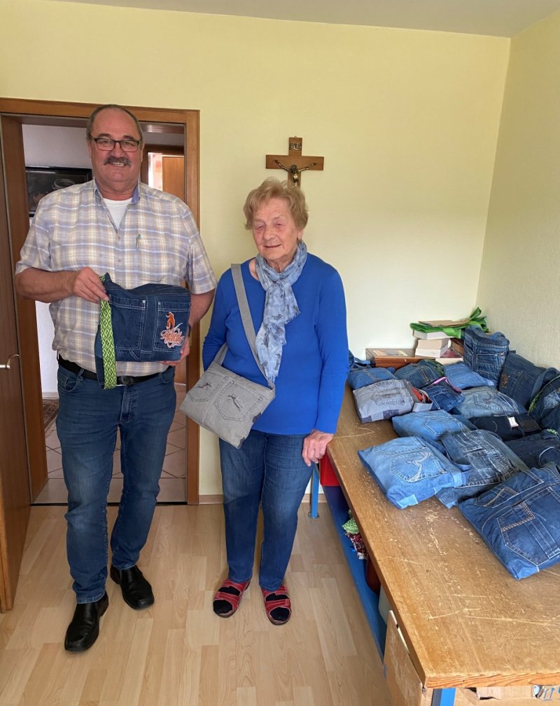 Luise Galler aus Mitterskirchen (Landkreis Rottal-Inn) schenkt der Kinderkrebshilfe Rottal-Inn 30 Umhänge- und Handtaschen aus alten Jeans