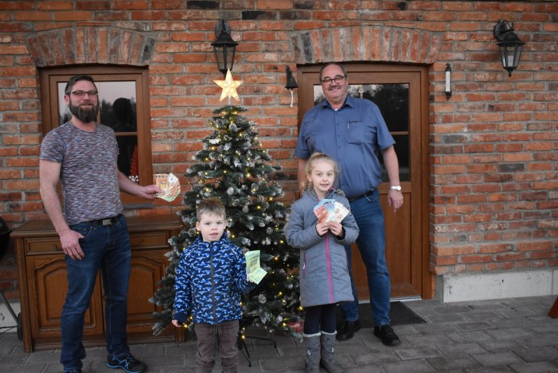 Das Foto zeigt die Spendenübergabe: von links Michael, Marcus und Anna Engleder sowie Josef Hofbauer