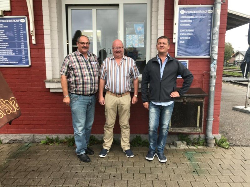 Das Foto zeigt die Spendenübergabe: von links Josef Hofbauer, Thomas Steininger (Jubilar) und Hannes Schötz (Bahnhofstüberl-Inhaber)