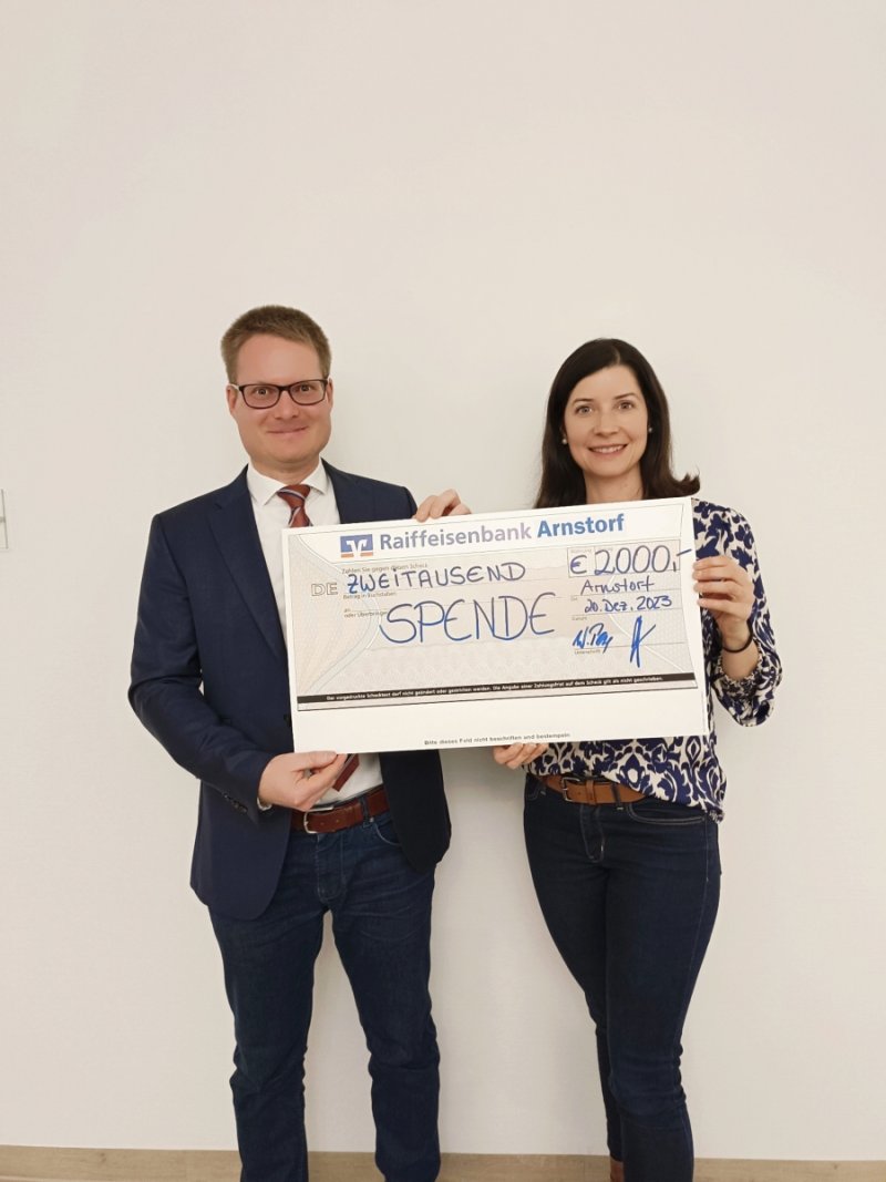 Raiffeisenbank Arnstorf (Landkreis Rottal-Inn) spendet 2000 €