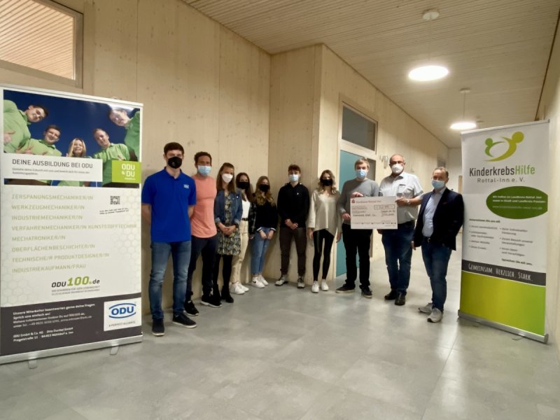 Zur Spendenübergabe kamen einer der Hauptsponsoren, Tobias Haunreiter von ODU Steckverbindungssysteme und Josef Hofbauer, Vorsitzender der KinderkrebsHilfe Rottal-Inn, persönlich. Dieser dankte den Verantwortlichen: “Mit diesem Geld unterstützen wir betroffene Familien, z.B. ermöglichen wir ihnen Ausflüge, übernehmen Kosten für Therapien.” Die Schülersprecher Bastian Brand, Alina Kircher und Janik Reicherzer sind sich einig: “Auch künftig werden wir weitere Aktionen planen, um diese Organisation zu unterstützen.”