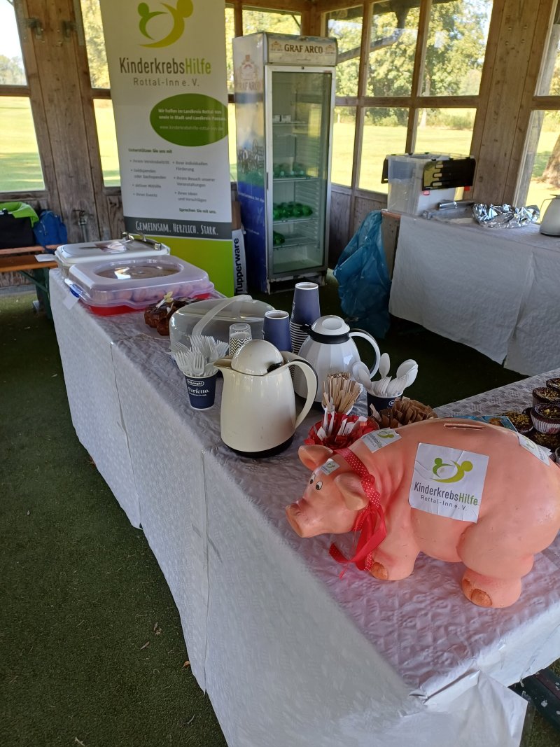 Im Zuge des Golfturnieres, das der Rottaler Rottaler Golf & Countryclub Hebertsfelden zu Gunsten der KinderkrebsHilfe Rottal-Inn e.V. ausgerichtet hat, erhielt der gemeinnützige Verein noch weitere 272,30 €. Clubsekretärin Alisa Dietl organisierte noch ein Kaffee- und Kuchenbuffet auf dem Platz, an dem sich die Golfer gegen eine Spende stärken konnten. Alisa spendete einen Großteil der Gebäckstücke und ein paar Kuchenbäckerinnen wurden von der KinderkrebsHilfe noch unterstützend hinzugezogen, so dass eine reichhaltige Auswahl von den Helferinnen des begünstigten Vereins angeboten werden konnte.