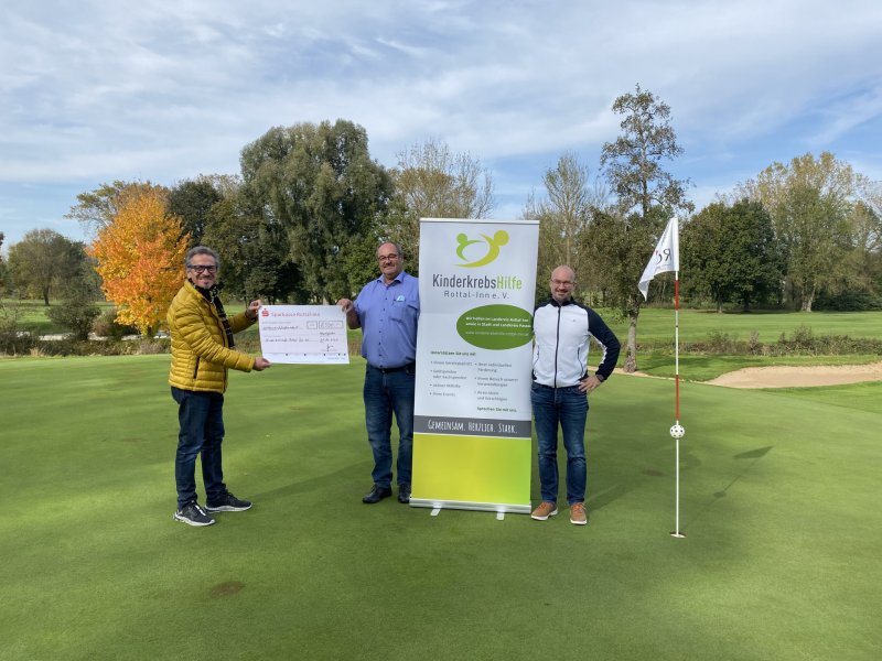 Bei der kürzlich erfolgten Spendenübergabe konnten RGCC-Präsident Guido Gabisch (Foto links) und RGCC Clubmanager Wolfgang Obermeier (rechts) einen Betrag in Höhe von 8500 € auf dem Spendenscheck eintragen und diesen an Josef Hofbauer (Mitte, Vorsitzender KinderkrebsHilfe Rottal-Inn e.V.) überreichen. Bereits zum zweiten Mal gingen die Einnahmen des traditionellen Charity-Turnieres an diese Einrichtung, um deren Tätigkeit in der Region zu unterstützen.