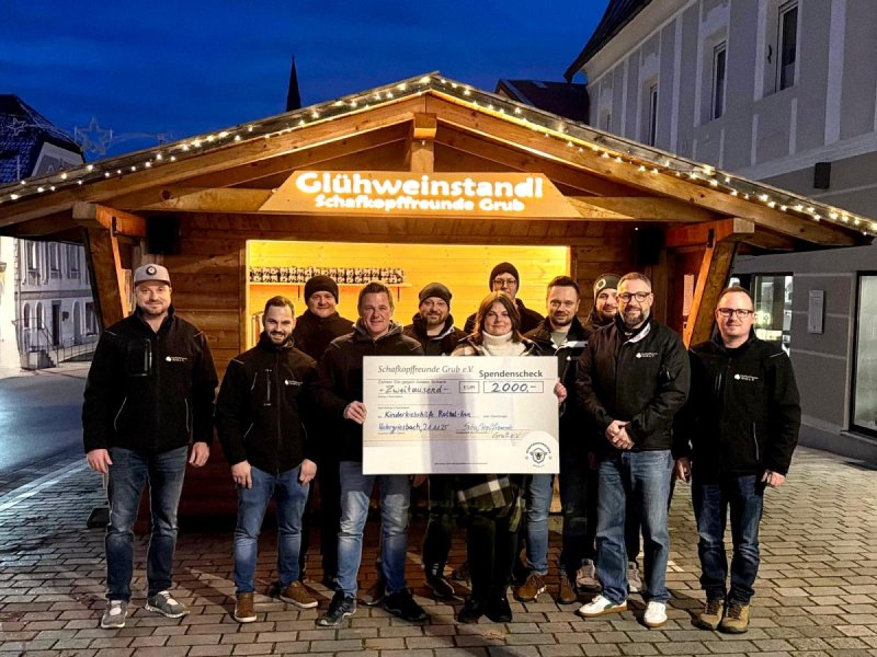 Viele treue Kunden kommen alljährlich in der Vorweihnachtszeit in den weihnachtlich geschmückten Markt und genießen einen heißen Glühwein oder Punsch an den Feuertonnen. Unter anderem den vielen Kunden ist es zu verdanken, dass der Verein 2000 € an die KinderkrebsHilfe Rottal-Inn e.V. übergeben durfte. Bereits im Sommer spendeten die Schafkopfer zusammen mit einigen weiteren Vereinen in Hanzing einen Betrag von 300 € an die KinderkrebsHilfe. Symbolisch wurde der Spendenscheck nun von Vorstand Ralf Pfeil an Brigitte Kronawitter von der KinderkrebsHilfe übergeben, welche sich sehr über die großzügige Summe freute.