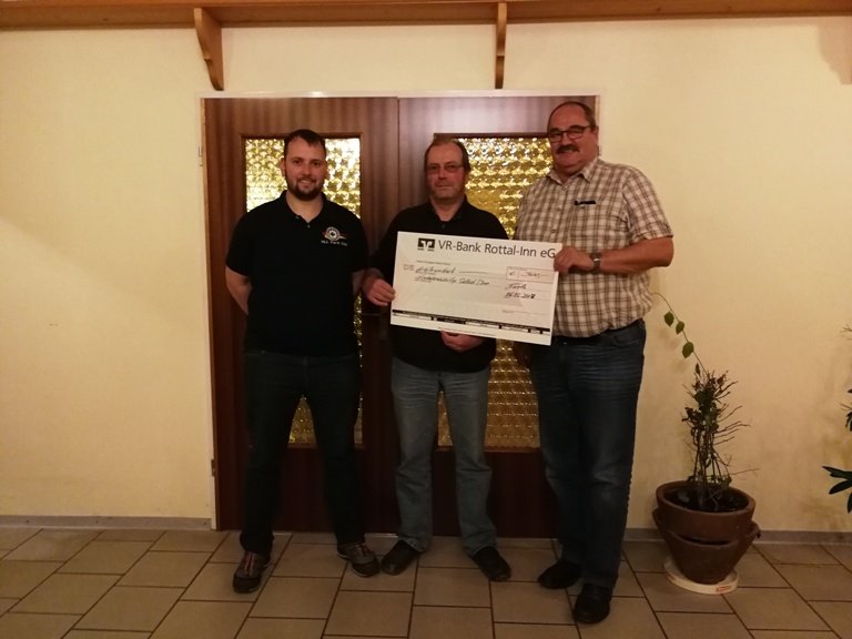 Das Foto zeigt die Spendenübergabe: Den Erlös aus den Startgebühren übergab die SLG-Delegation mit (von links) SLG-Schriftführer Georg Häuser und Vorsitzendem Florian Häuser an den Vorsitzenden der Kinderkrebshilfe Rottal-Inn, Josef Hofbauer, der sich für die finanzielle Unterstützung recht herzlich bedankte.